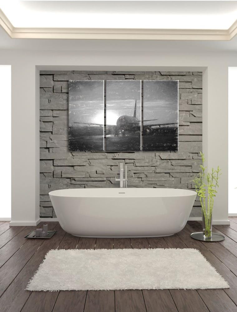 Pixxprint Flugzeug im Sonnenuntergang 3Teiler 120x80 cm Leinwandbild Wandbild Kunstdruck