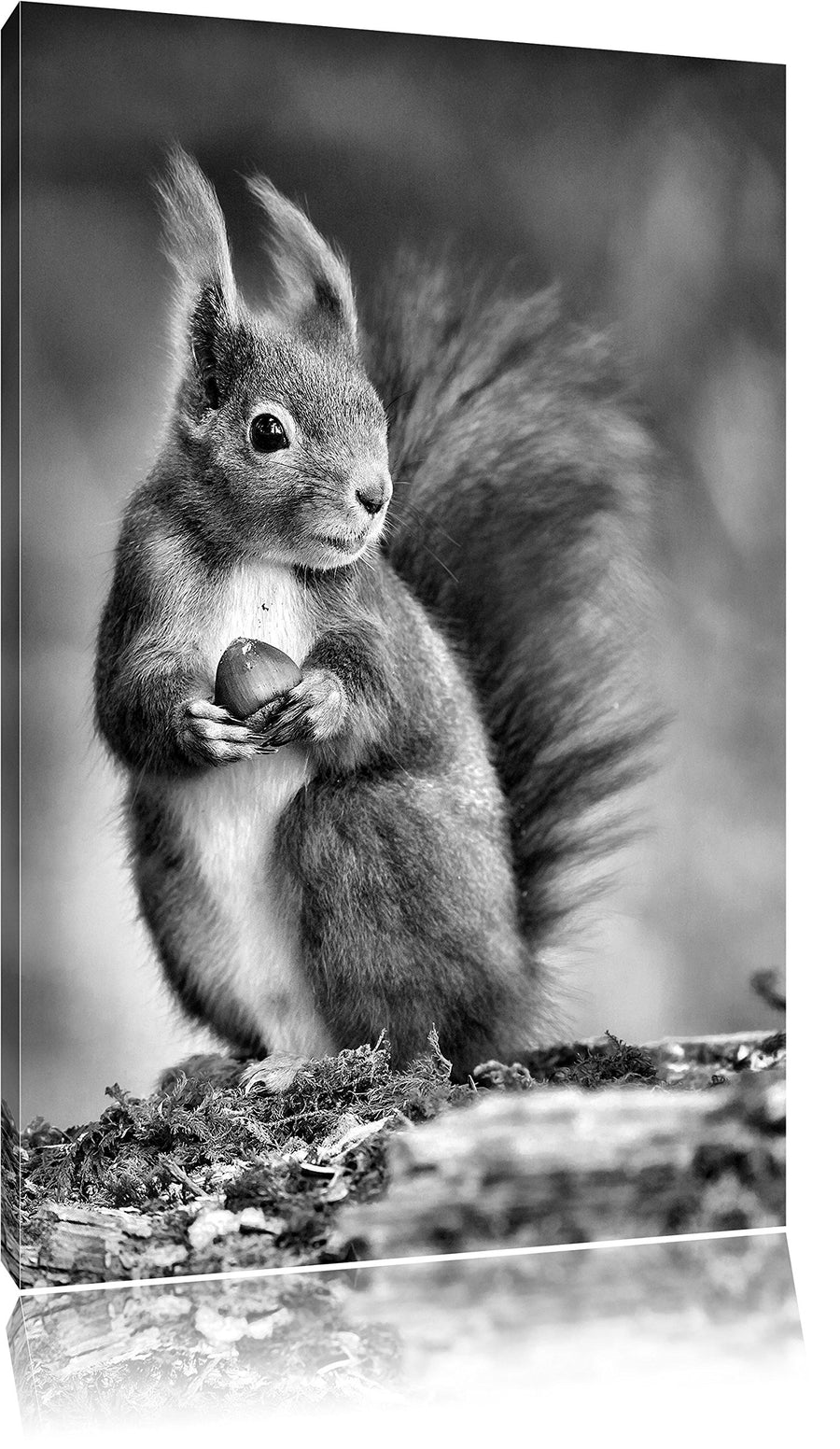 Pixxprint Freches Eichhörnchen mit Nuss als Leinwandbild/Grösse: 100x70 / Wandbild/Kunstdruck/fertig