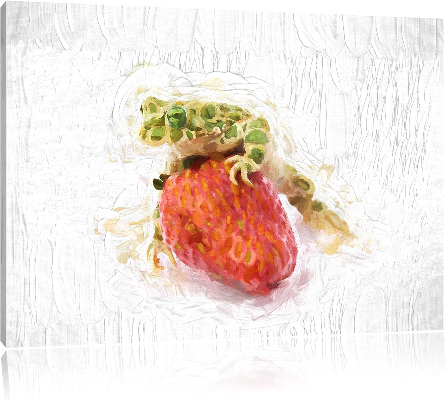Pixxprint Frosch mit Erdbeere als Leinwandbild/Grösse: 100x70 cm/Wandbild/Kunstdruck/fertig bespannt