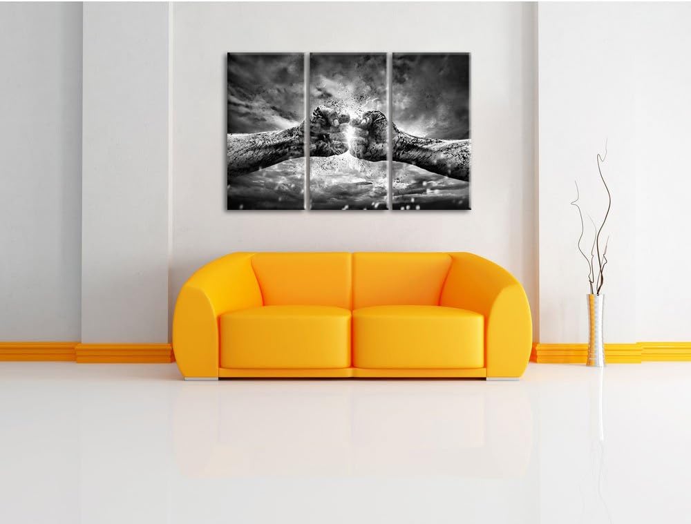 Pixxprint Fäuste treffen Sich mit Energie als Leinwandbild/Grösse: 3Teilig (120x80) / Wandbild/Kunst