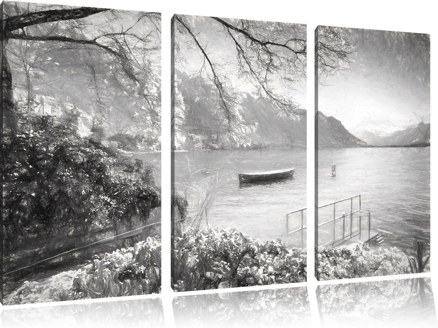 Pixxprint Genfer See im Sonnenschein Kunst / 3-Teilig/Gesamtmass 120cm Leinwandbild bespannt auf Hol
