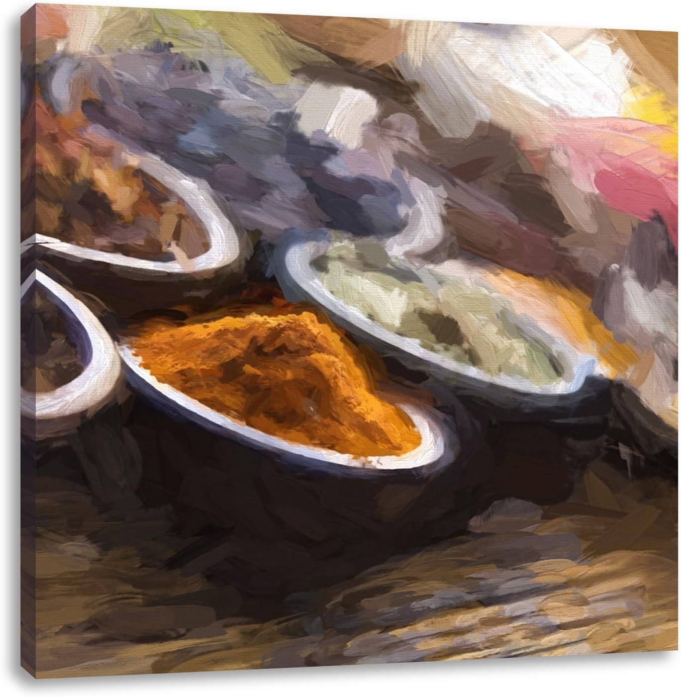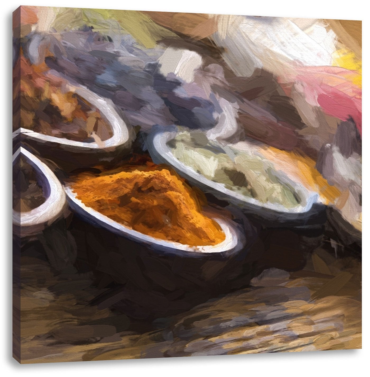 Pixxprint Gewürzvielfalt auf Holztisch als Leinwandbild/Grösse: 70x70 cm/Wandbild/Kunstdruck/fertig