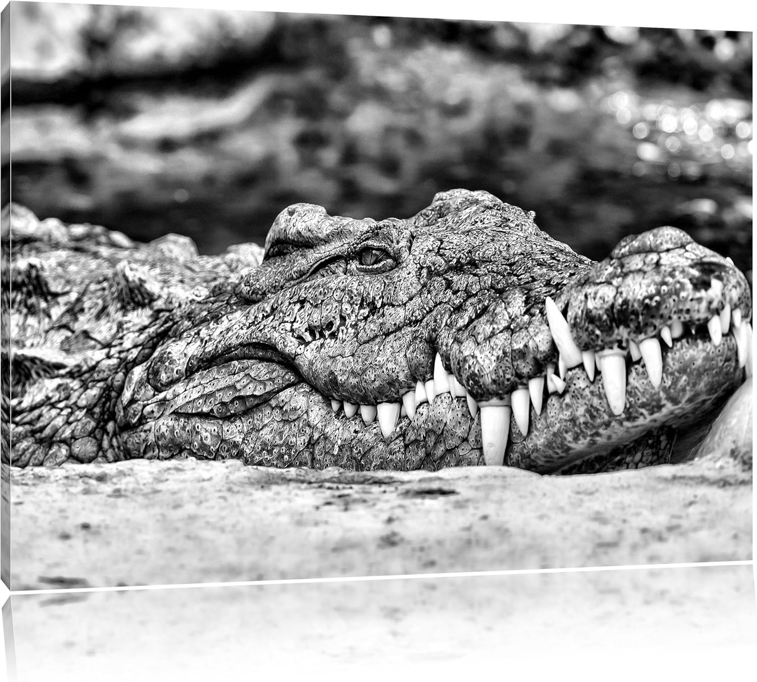 Pixxprint gigantisches Krokodil / 100x70cm Leinwandbild bespannt auf Holzrahmen/Wandbild Kunstdruck