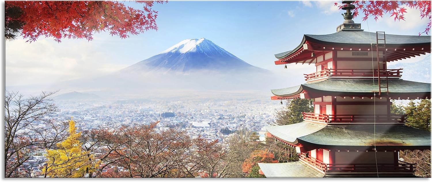 Pixxprint Glasbild Panorama, Wandbild aus Echtglas, Japanischer Tempel im Herbst, 100x40 cm, inkl. A