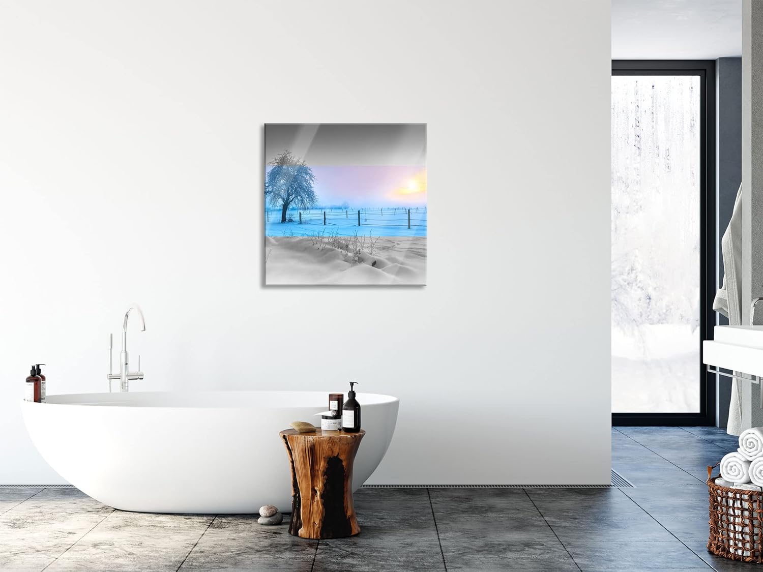 Pixxprint Glasbild | Wandbild auf Echtglas | Baum in Winterlandschaft | 40x40 cm | inkl. Aufhängung