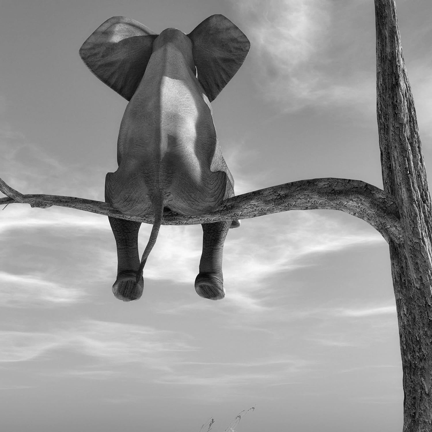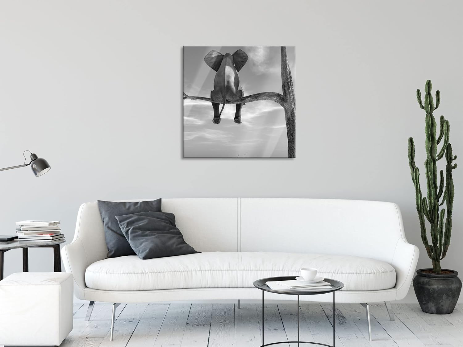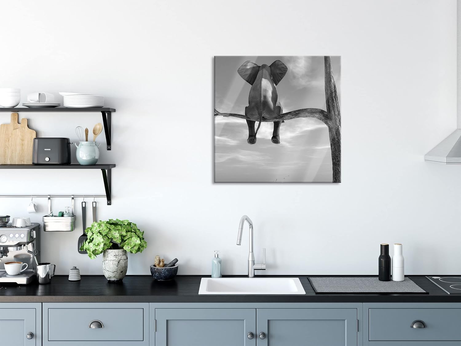 Pixxprint Glasbild | Wandbild auf Echtglas | Elefant auf einem Ast in der Wüste | 50x50 cm | inkl. A