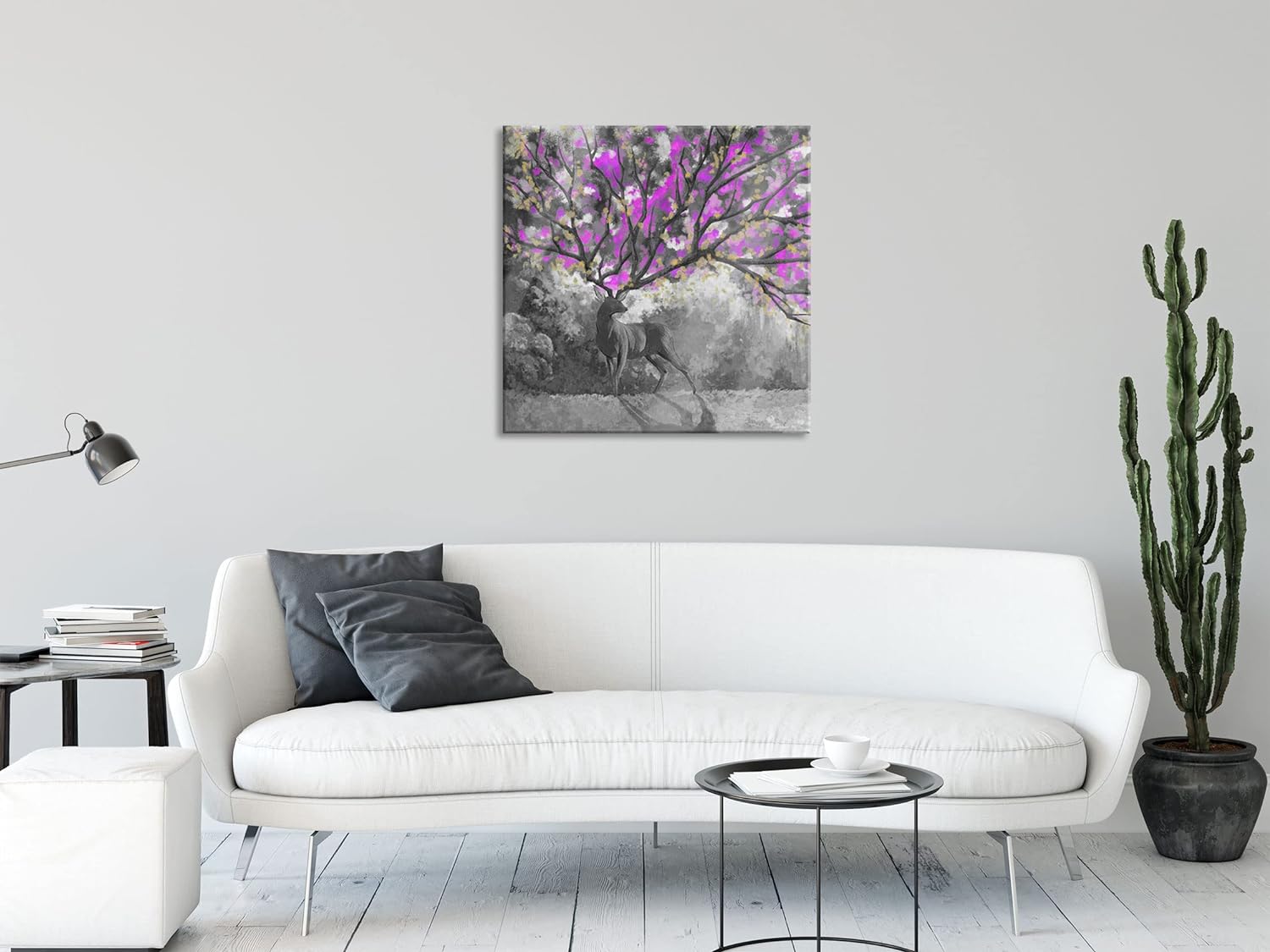 Pixxprint Glasbild | Wandbild auf Echtglas | Fantasievoller Hirsch mit Baumgeweih B&W Detail | 70x70