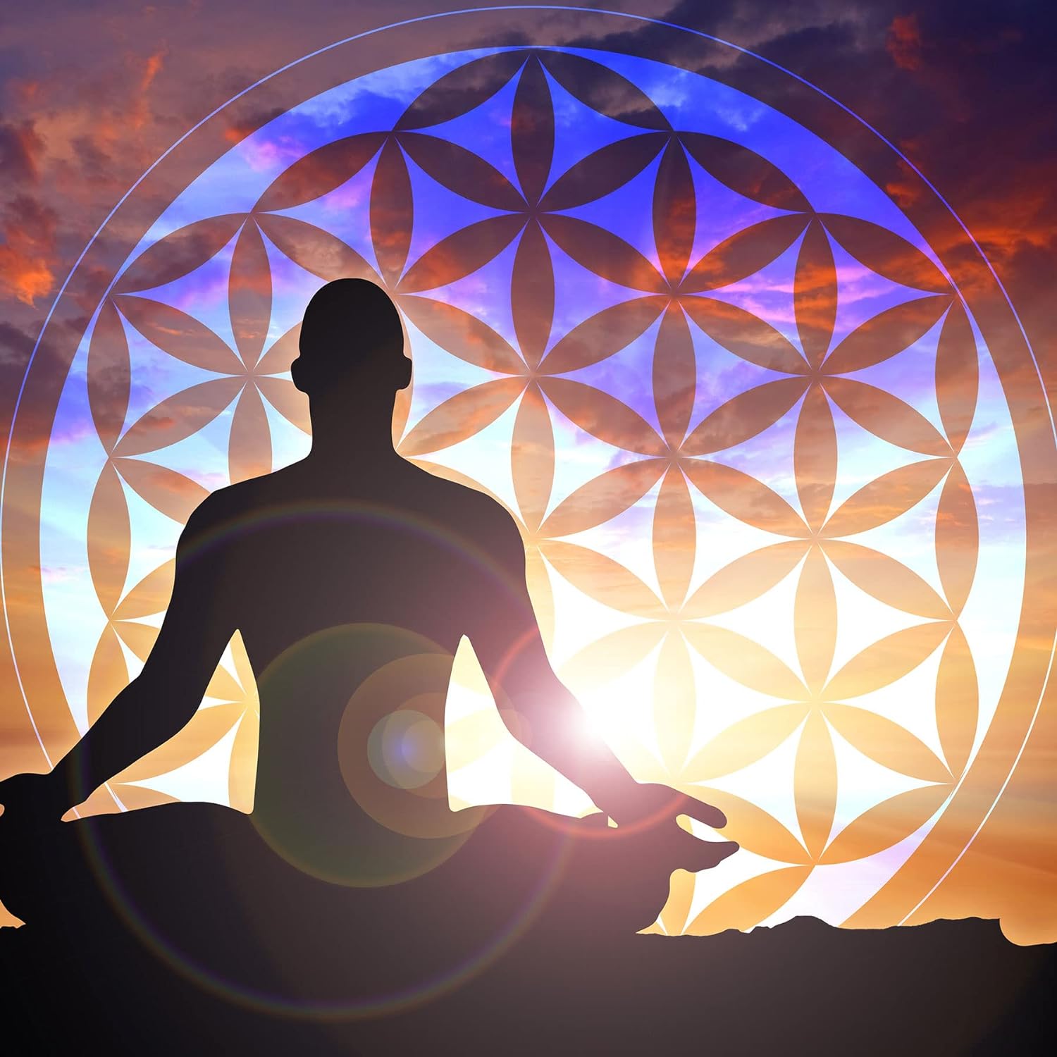 Pixxprint Glasbild | Wandbild auf Echtglas | Mensch Blume des Lebens | 50x50 cm | inkl. Aufhängung u