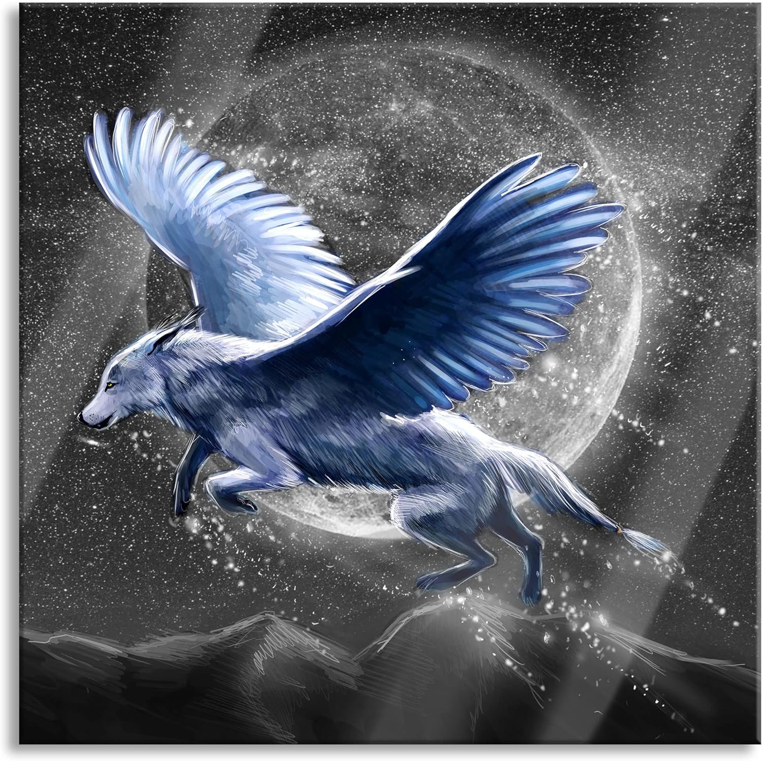 Pixxprint Glasbild | Wandbild auf Echtglas | Wolf mit Flügeln | 80x80 cm | inkl. Aufhängung und Abst