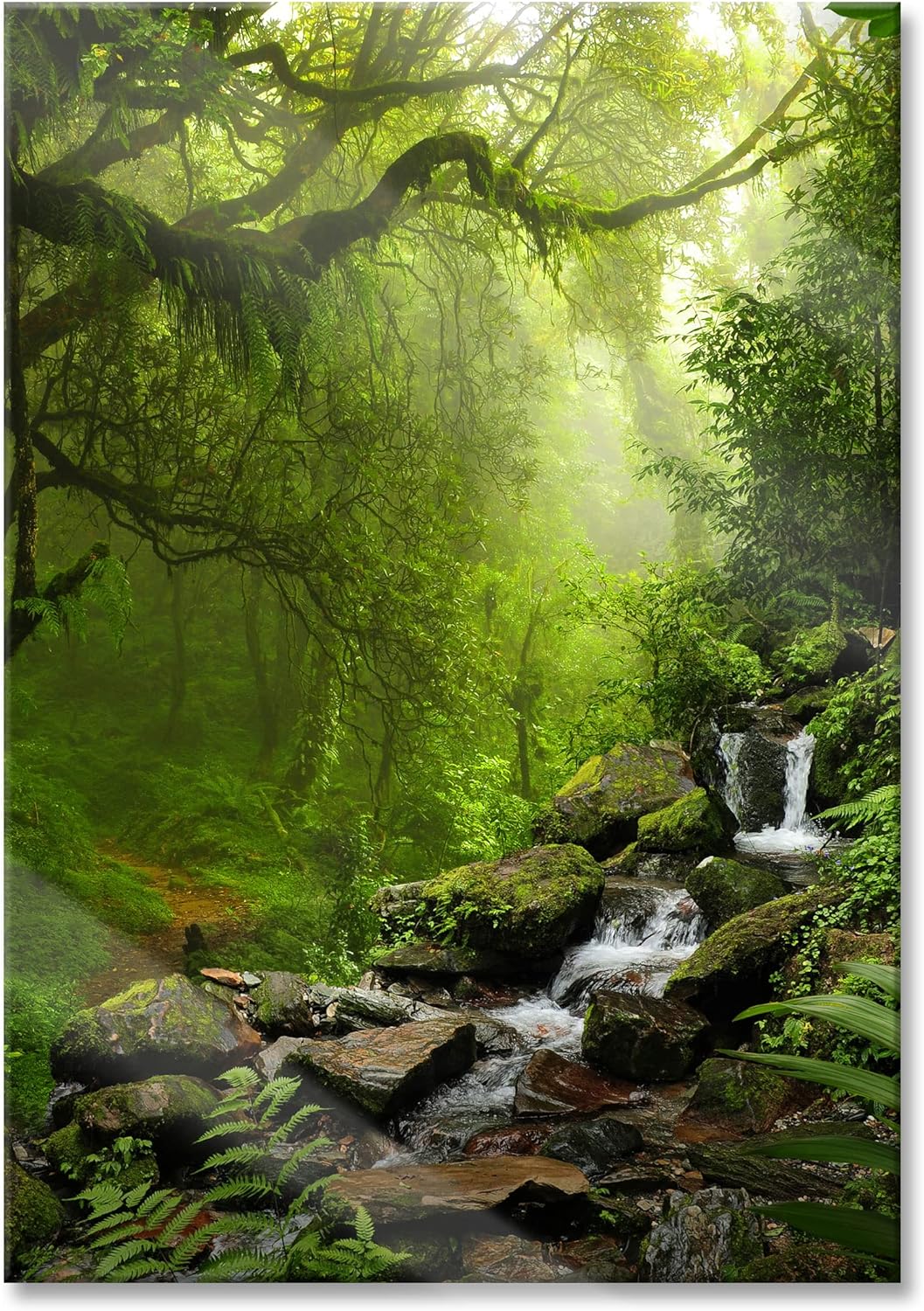 Pixxprint Glasbild | Wandbild aus Echtglas | Kleinder Wasserfall im Dschungel | 60x80 cm | inkl. Auf