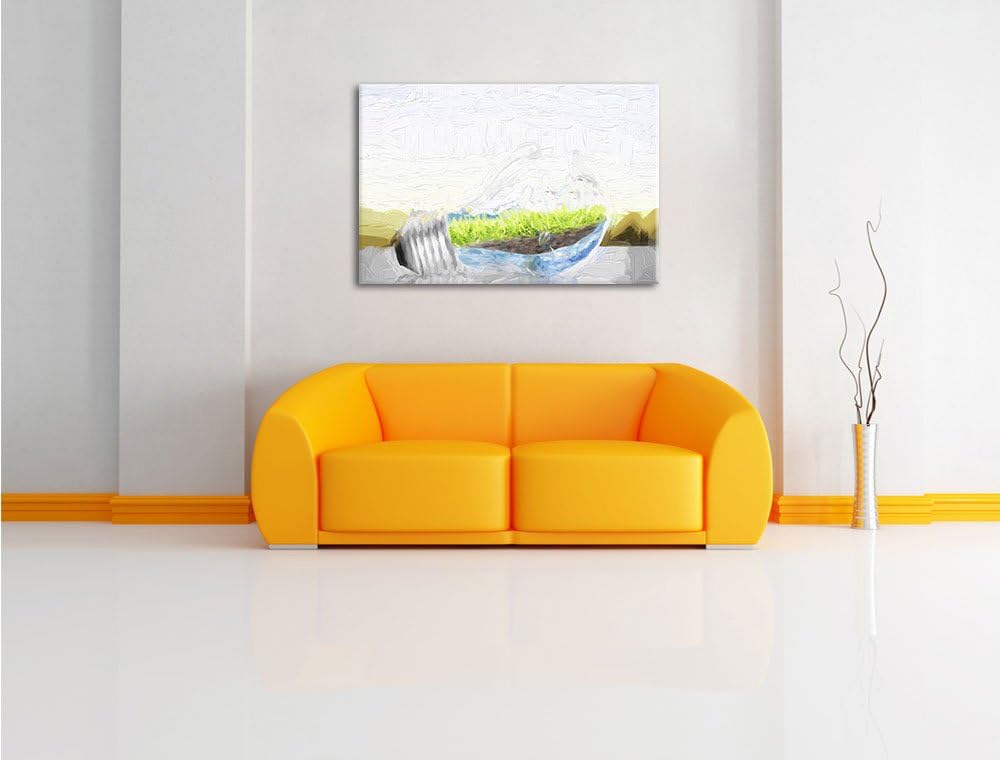 Pixxprint Glühbirne mit erneuerbarer Energie als Leinwandbild/Grösse: 100x70 cm/Wandbild/Kunstdruck/
