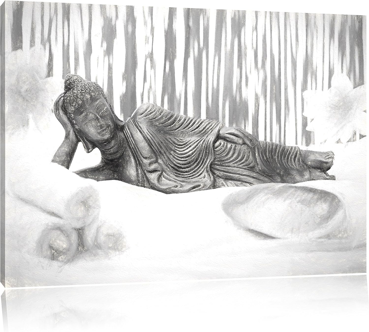 Pixxprint Goldener Buddha auf Handtuch Kunst Kohle Effekt, Format: 100x70 auf Leinwand, 100x70