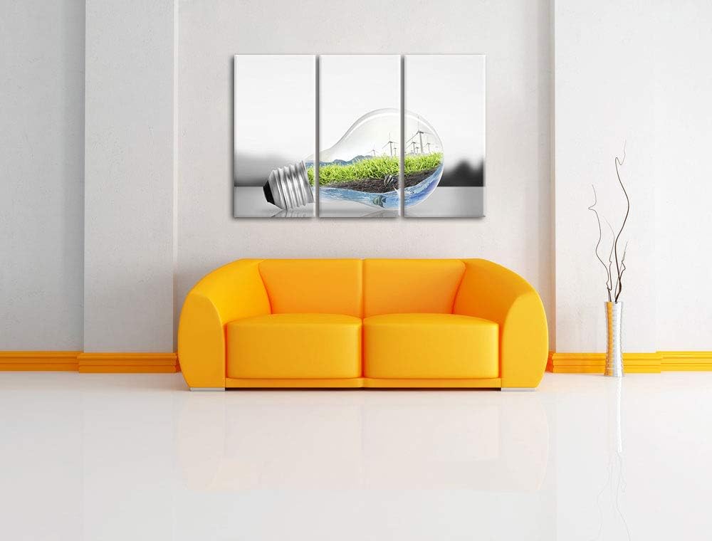 Pixxprint grüne Energie in Glühbirne als Leinwandbild | Grösse: 3 Teilig (120x80) | Wandbild| Kunstd