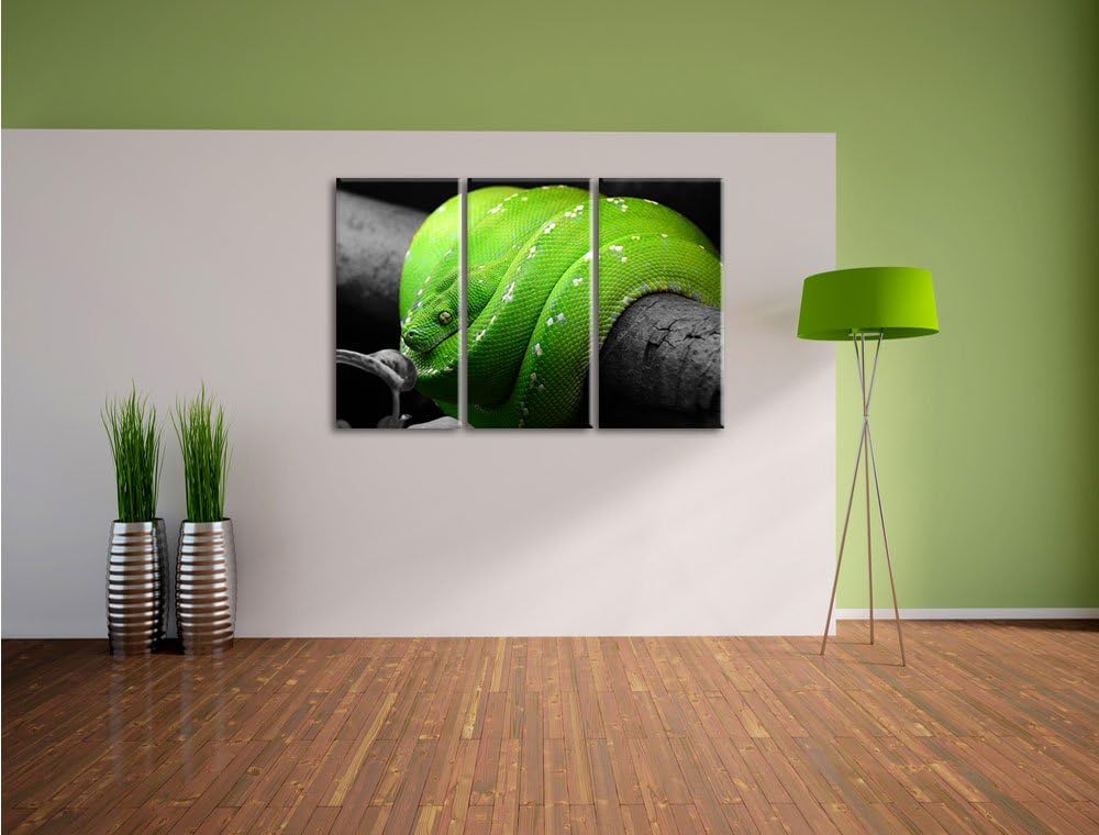 Pixxprint Grüne exotische Schlange als Leinwandbild/Grösse: 3 Teilig (120x80 cm) cm/Wandbild/Kunstdr