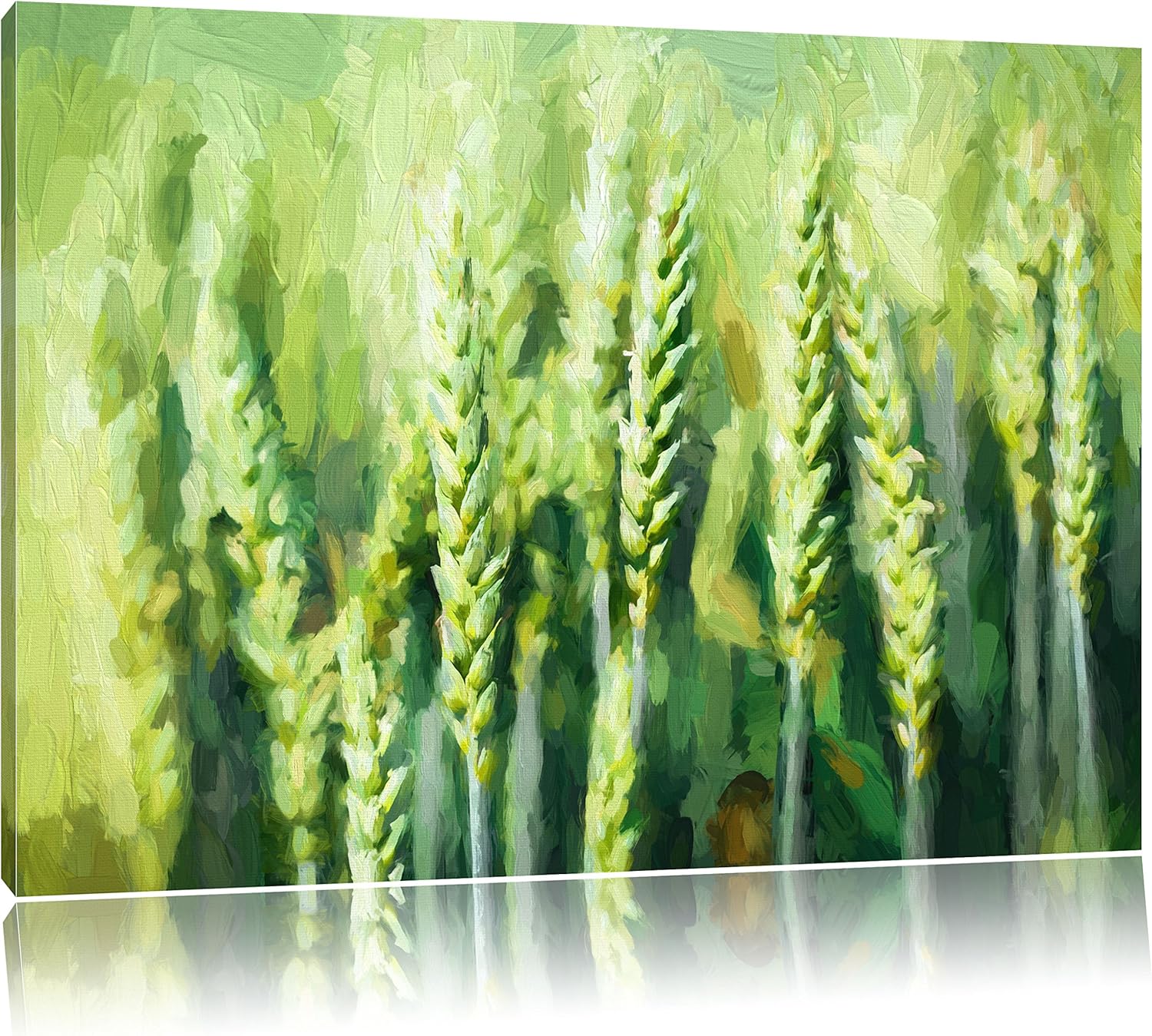 Pixxprint Grüne Weizen auf dem Feld Kunst als Leinwandbild/Grösse: 100x70 cm/Wandbild/Kunstdruck/fer