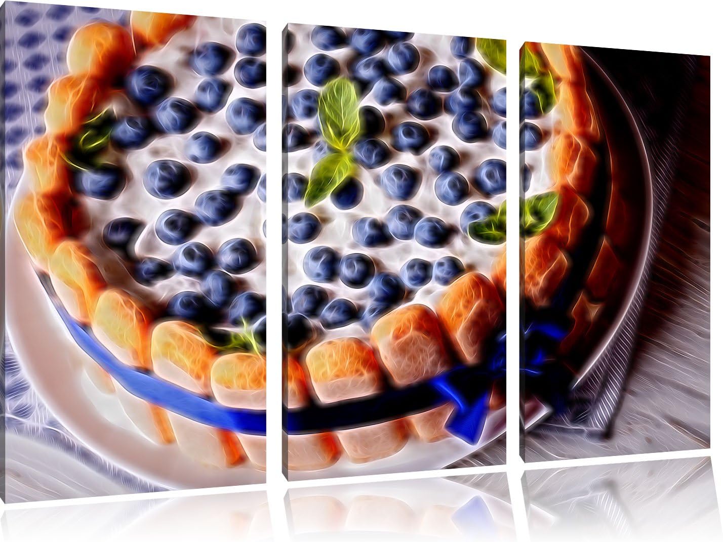 Pixxprint Heidelbeerkuchen Neon Lights Effekt 3-Teiler Leinwandbild 120x80 Bild auf Leinwand