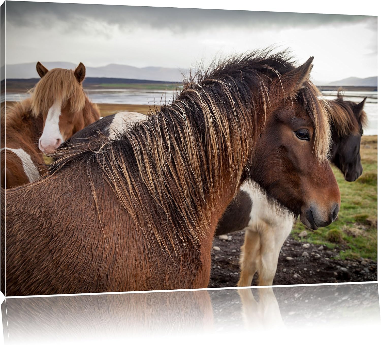 Pixxprint Herde aus schönen Wildpferden als Leinwandbild/Grösse: 100x70 cm/Wandbild/Kunstdruck/ferti