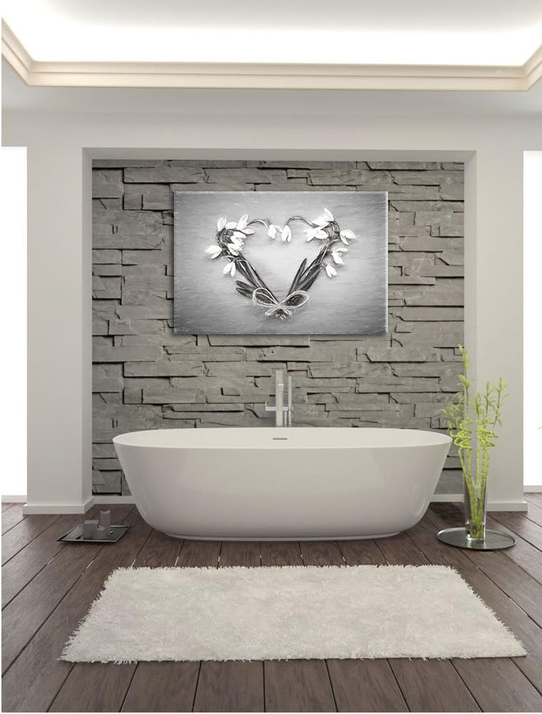 Pixxprint Herz aus Blumen Kunst / 100x70cm Leinwandbild bespannt auf Holzrahmen/Wandbild Kunstdruck