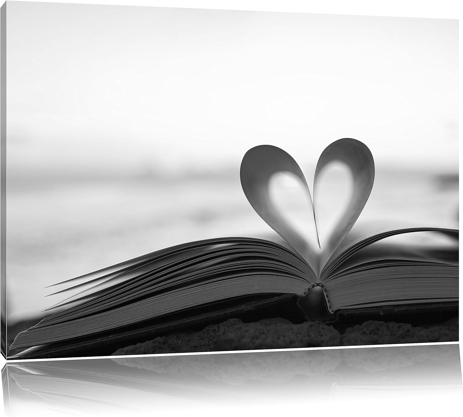 Pixxprint Herz aus Einer Buchseite / 100x70cm Leinwandbild bespannt auf Holzrahmen/Wandbild Kunstdru