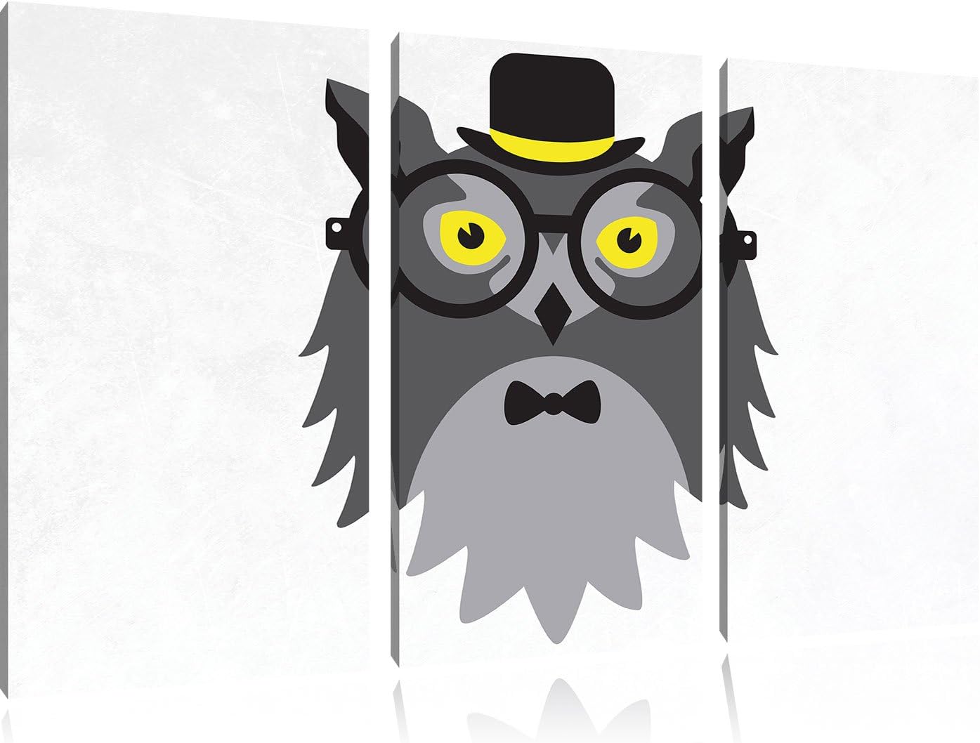 Pixxprint Hipster Eule / 3-Teilig/Gesamtmass 120cm Leinwandbild bespannt auf Holzrahmen/Wandbild Kun