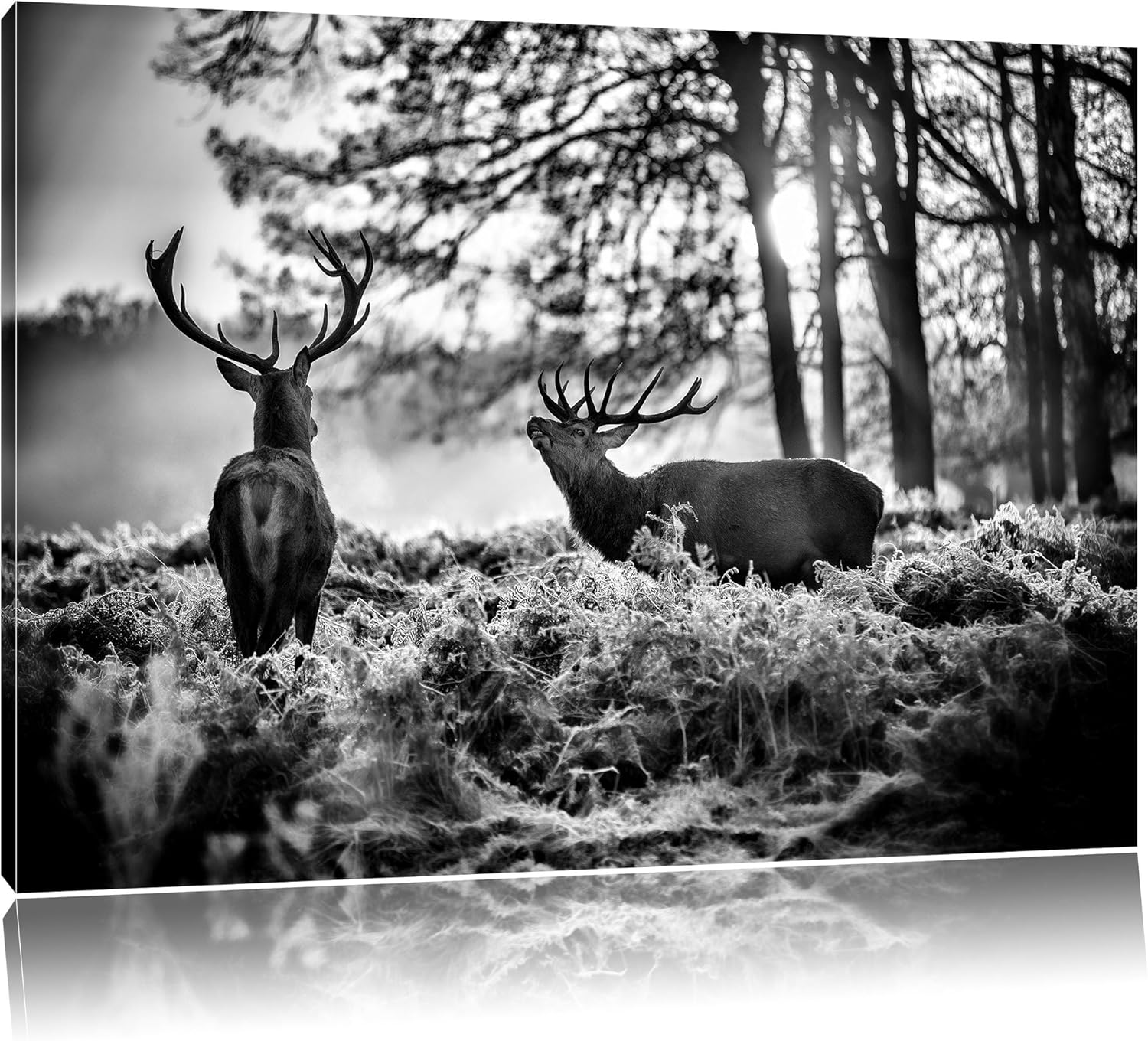 Pixxprint Hirsch Rivalen kämpfen als Leinwandbild/Grösse: 100x70 cm/Wandbild/Kunstdruck/fertig bespa