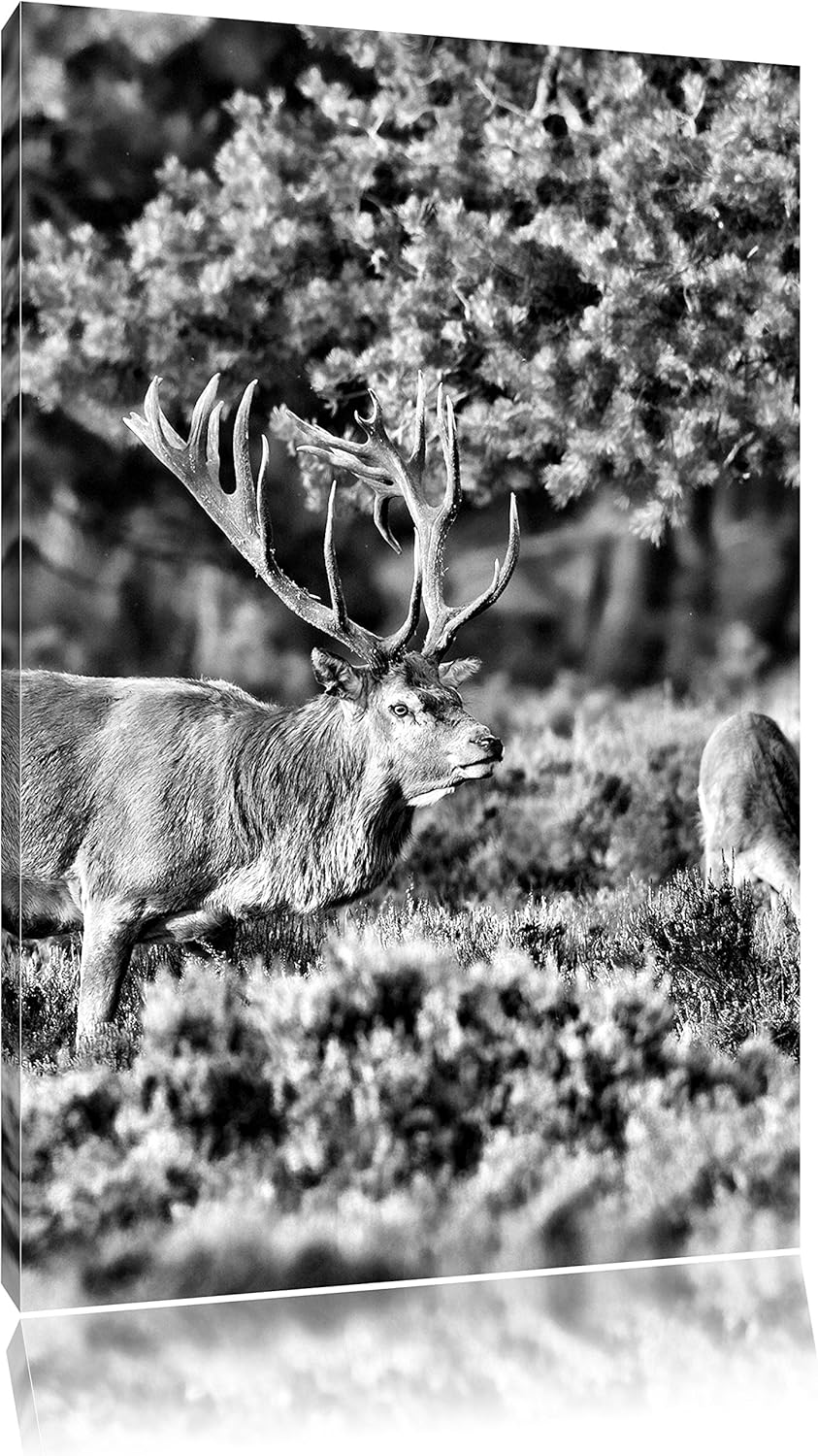 Pixxprint Hirschfamilie Wiese / 100x70cm Leinwandbild bespannt auf Holzrahmen/Wandbild Kunstdruck De