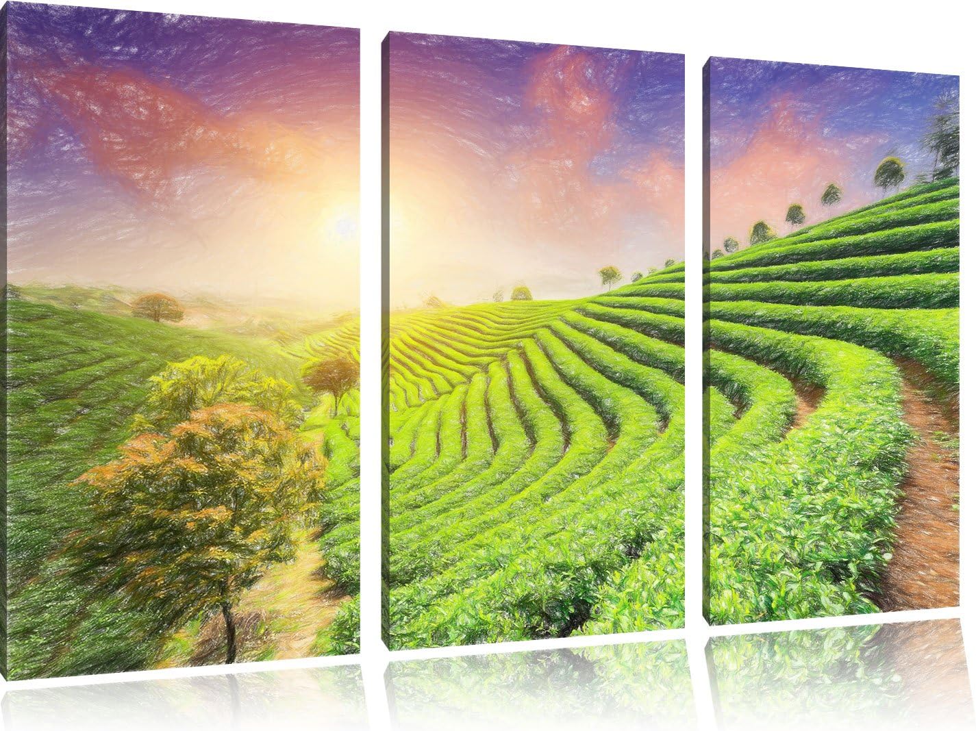 Pixxprint Japanische Treppenfelder / 3-Teilig/Gesamtmass 120cm Leinwandbild bespannt auf Holzrahmen/