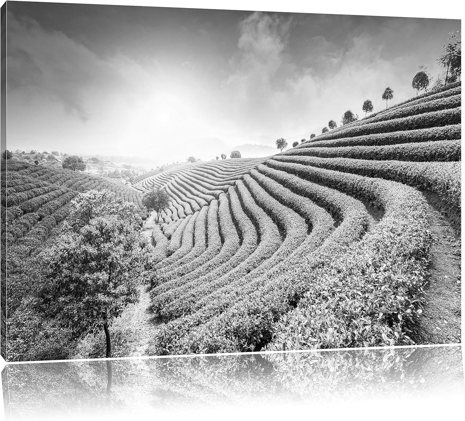 Pixxprint Japanische Treppenfelder Kunst B&W / 100x70cm Leinwandbild bespannt auf Holzrahmen/Wandbil