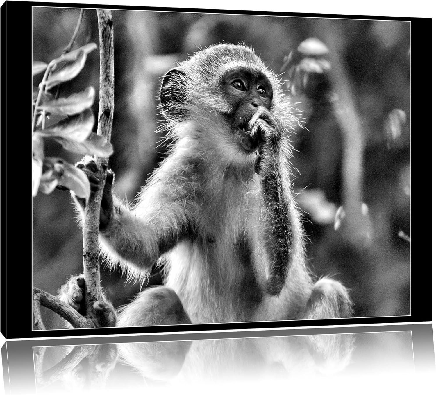 Pixxprint junges Äffchen auf Baum / 100x70cm Leinwandbild bespannt auf Holzrahmen/Wandbild Kunstdruc