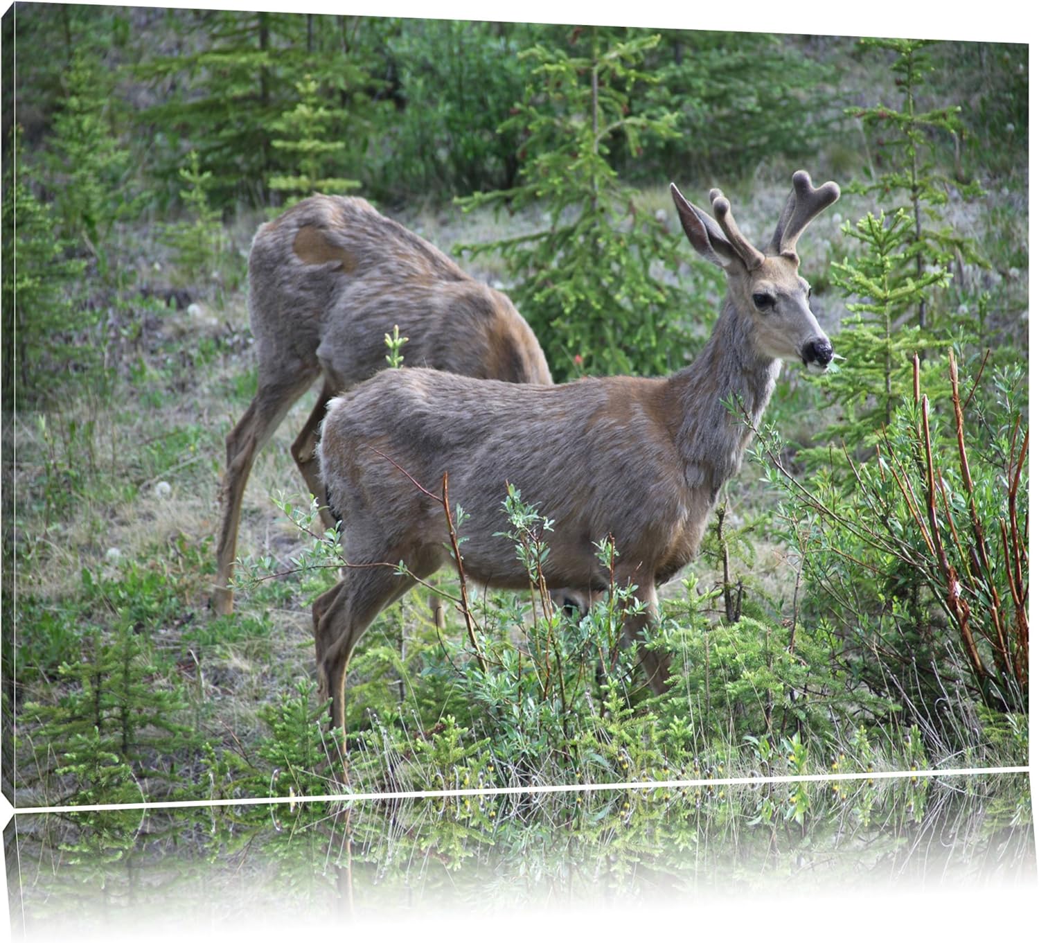 Pixxprint junges Rehpaar Leinwand, XXL riesige Bilder fertig gerahmt mit Keilrahmen, Kunstdruck auf