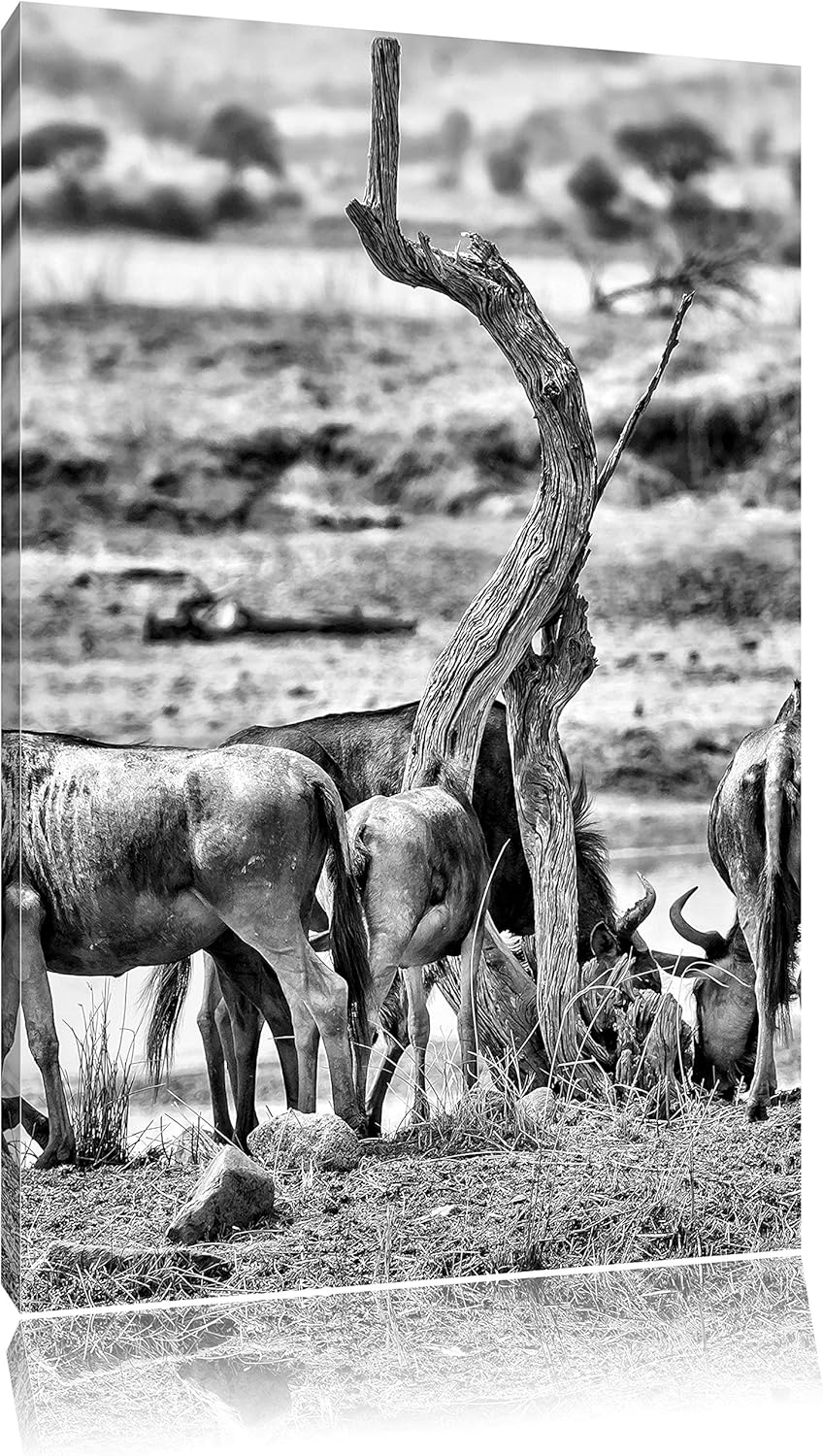 Pixxprint Kaffernbüffel Herde in Savanne/Format: 100x70cm / Leinwandbild fertig bespannt Wandbild Ku