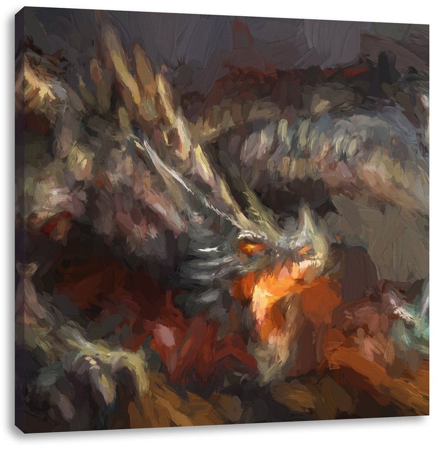 Pixxprint Kampf zwischen Mensch und Drache Pinsel Effekt, Format: 70x70 auf Leinwand, 70x70