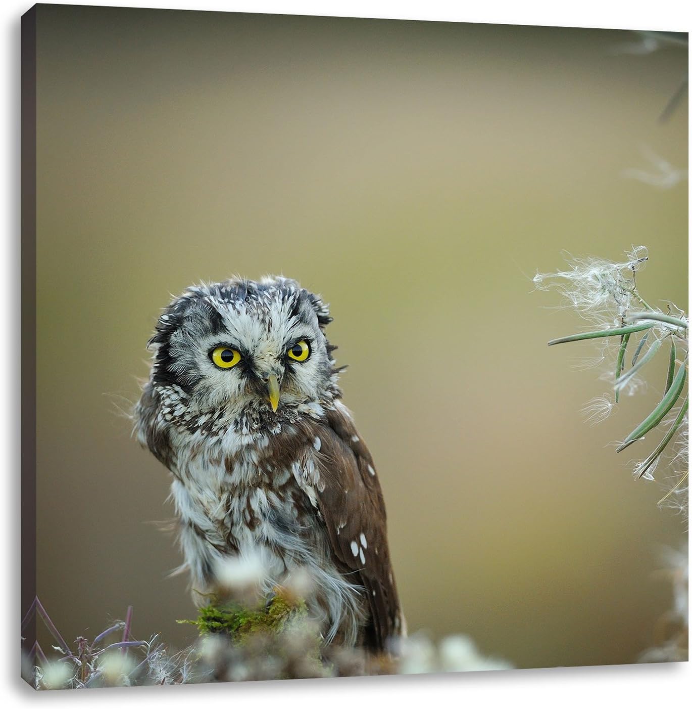 Pixxprint Kauz bestaunt Blatt als Leinwandbild Quadratisch/Grösse: 70x70 / Wandbild/Kunstdruck/ferti