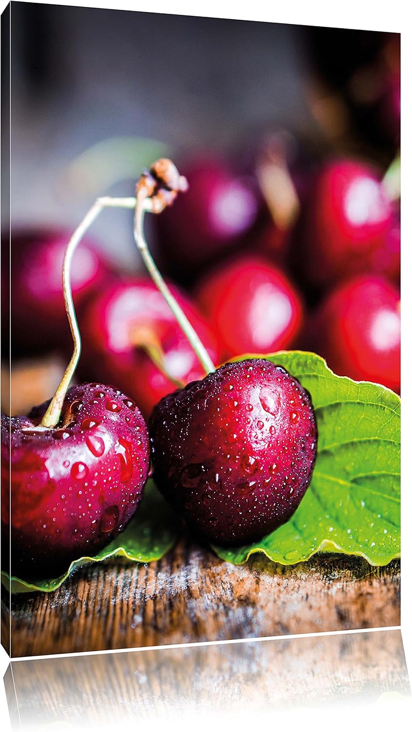 Pixxprint Kirschen, Format: 100x70 auf Leinwand, XXL riesige Bilder fertig gerahmt mit Keilrahmen, K