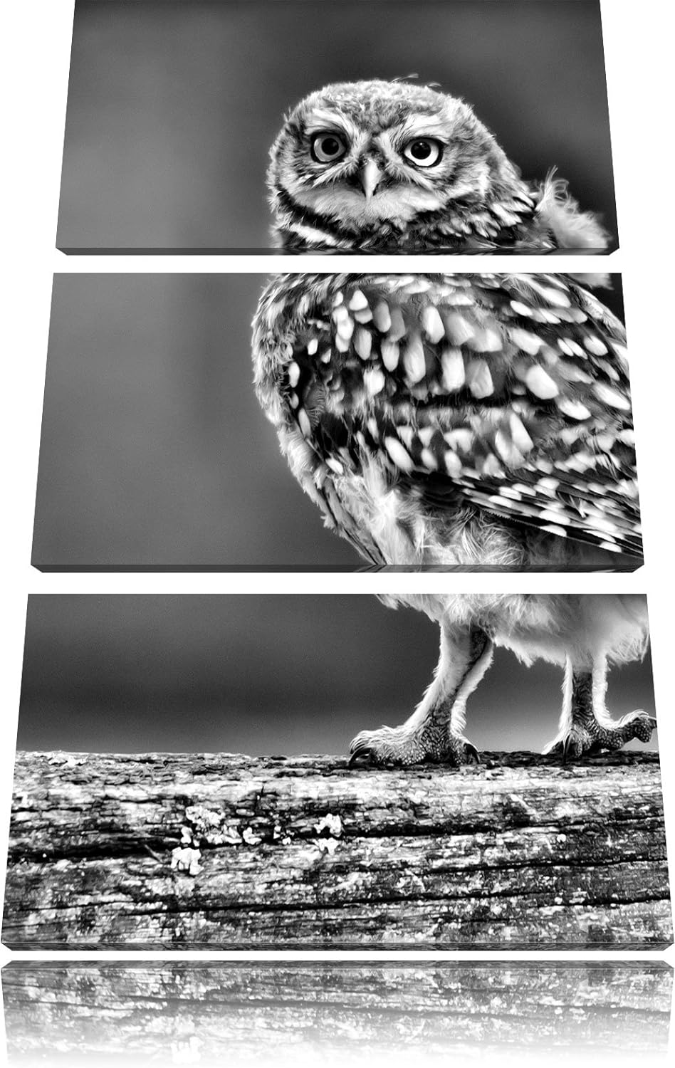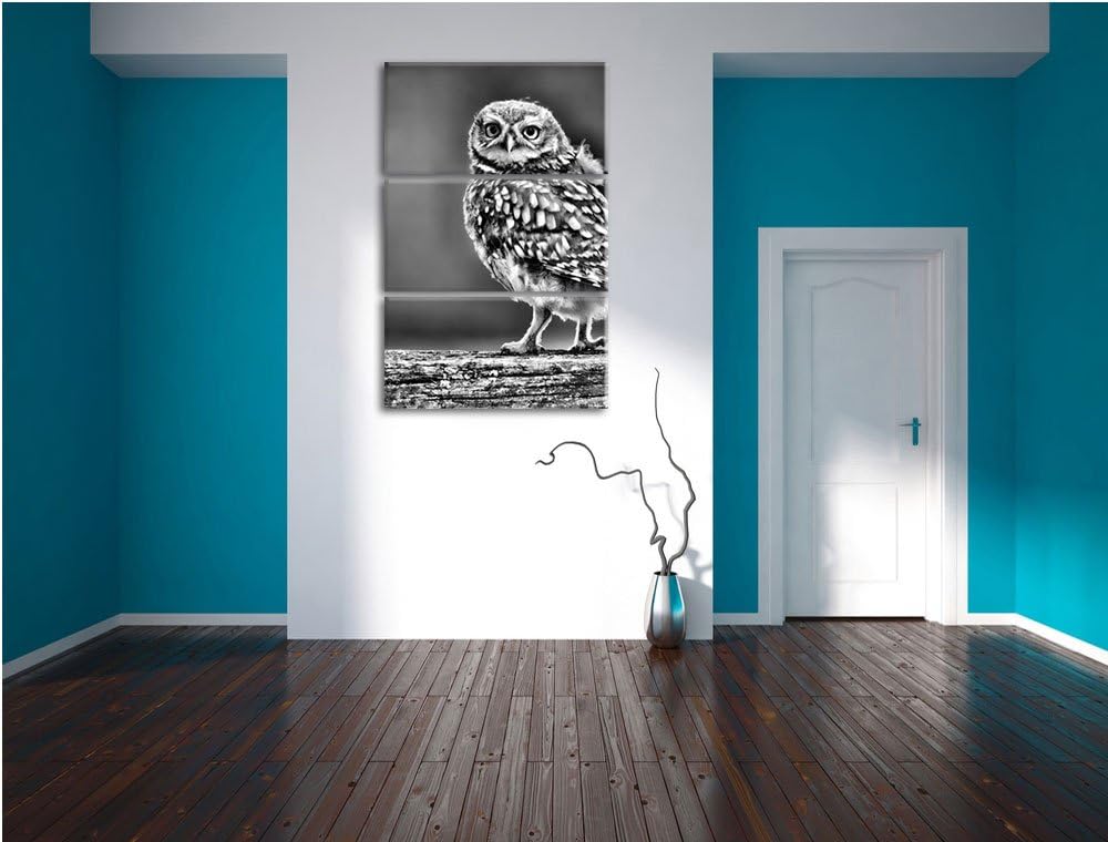 Pixxprint Kleine Eule auf Baum als Leinwandbild/Grösse: 3 Teilig (120x80) cm/Wandbild/Kunstdruck/fer