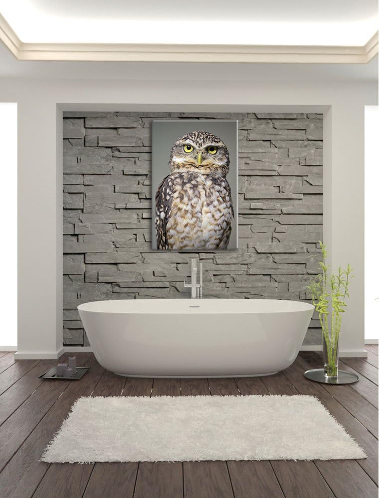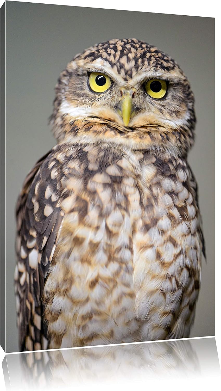 Pixxprint kleine Eule auf Leinwand, XXL riesige Bilder fertig gerahmt mit Keilrahmen, Kunstdruck auf