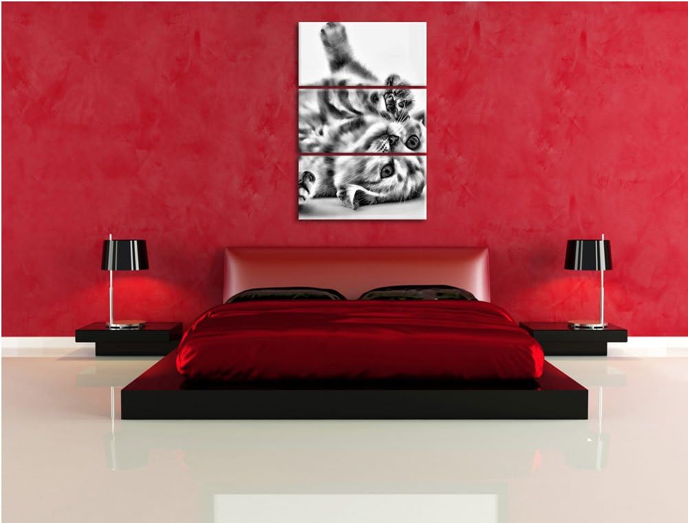 Pixxprint Kleine Katze als Leinwandbild/Grösse: 3 Teilig (120x80) / Wandbild/Kunstdruck/fertig bespa