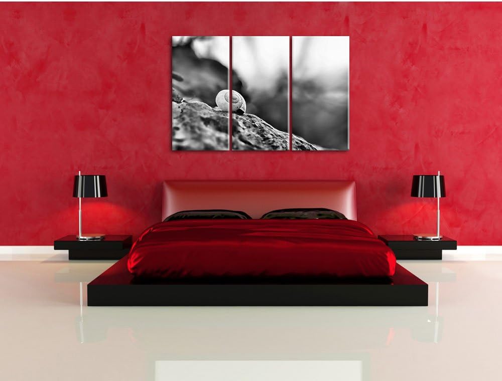 Pixxprint kleine Schnecke auf Stein als Leinwandbild/Grösse: 3 Teilig (120x80) cm/Wandbild/Kunstdruc
