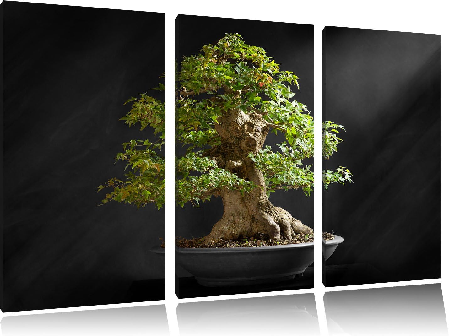 Pixxprint Kleiner Bonsaibaum / 3-Teilig/Gesamtmass 120cm Leinwandbild bespannt auf Holzrahmen/Wandbi