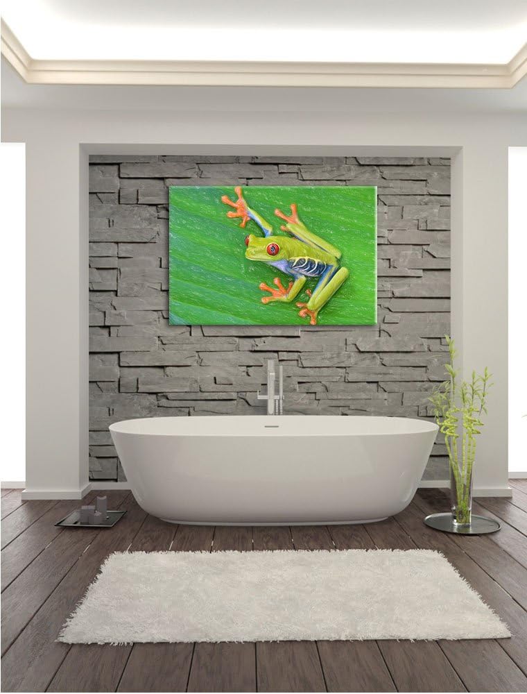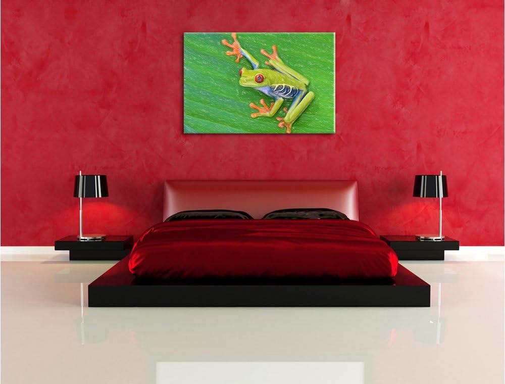 Pixxprint Kleiner Frosch auf Blatt als Leinwandbild/Grösse: 100x70 / Wandbild/Kunstdruck/fertig besp