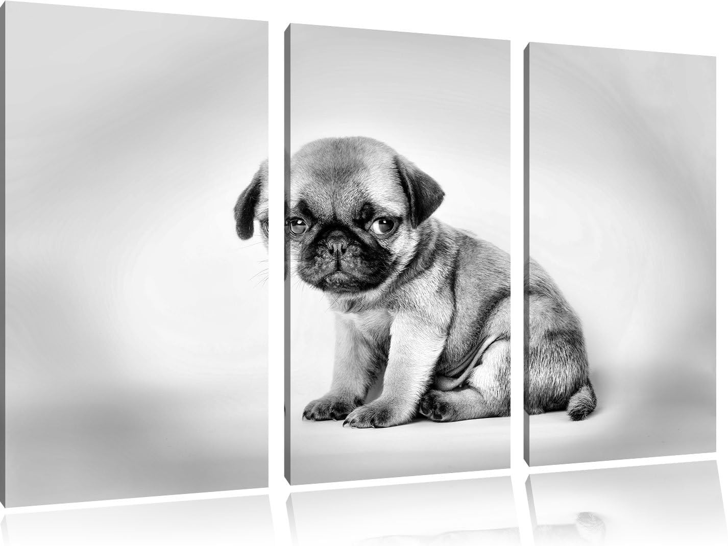 Pixxprint Kleiner Hundewelpe Mops als Leinwandbild/Grösse: 3 Teilig (120x80 cm) cm/Wandbild/Kunstdru