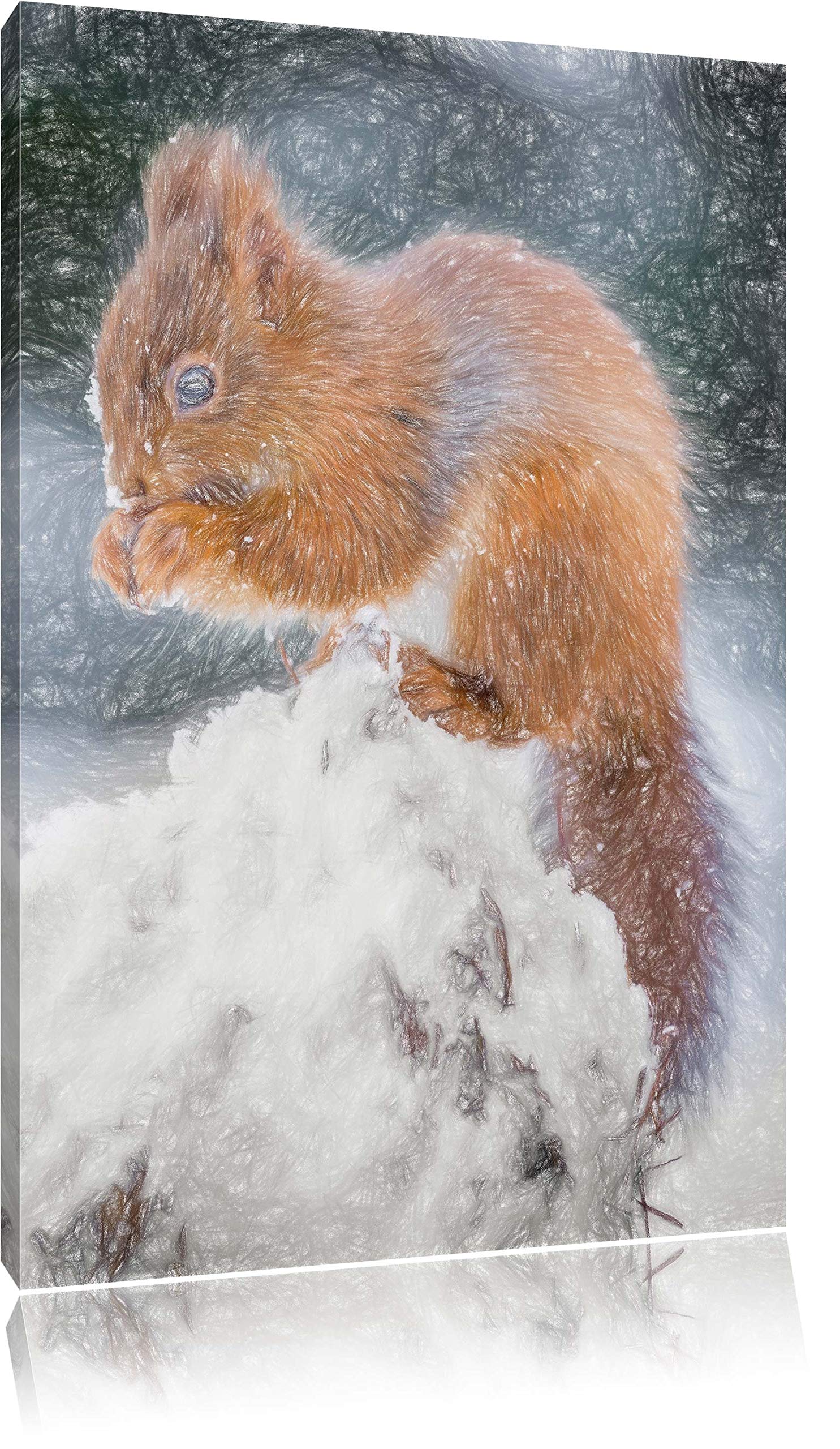 Pixxprint Kleines Eichhörnchen im Winter als Leinwandbild/Grösse: 100x70 cm/Wandbild/Kunstdruck/fert