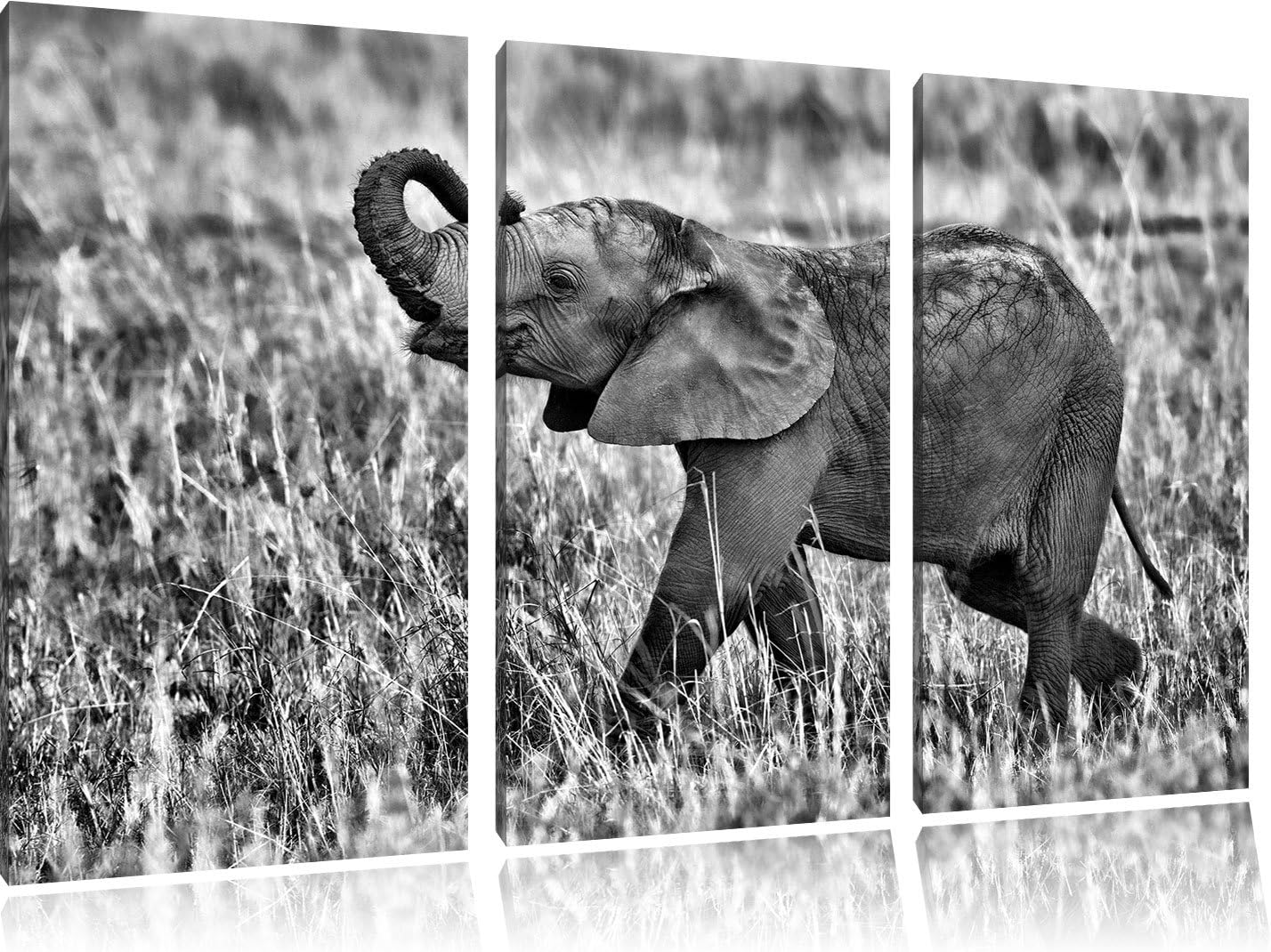 Pixxprint kleines Elefantenjunges als Leinwandbild/Grösse: 3 Teilig (120x80) cm/Wandbild/Kunstdruck/