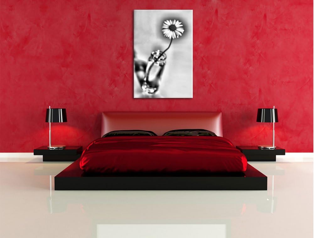 Pixxprint kleines Gänseblümchen im Glas / 100x70cm Leinwandbild bespannt auf Holzrahmen/Wandbild Kun