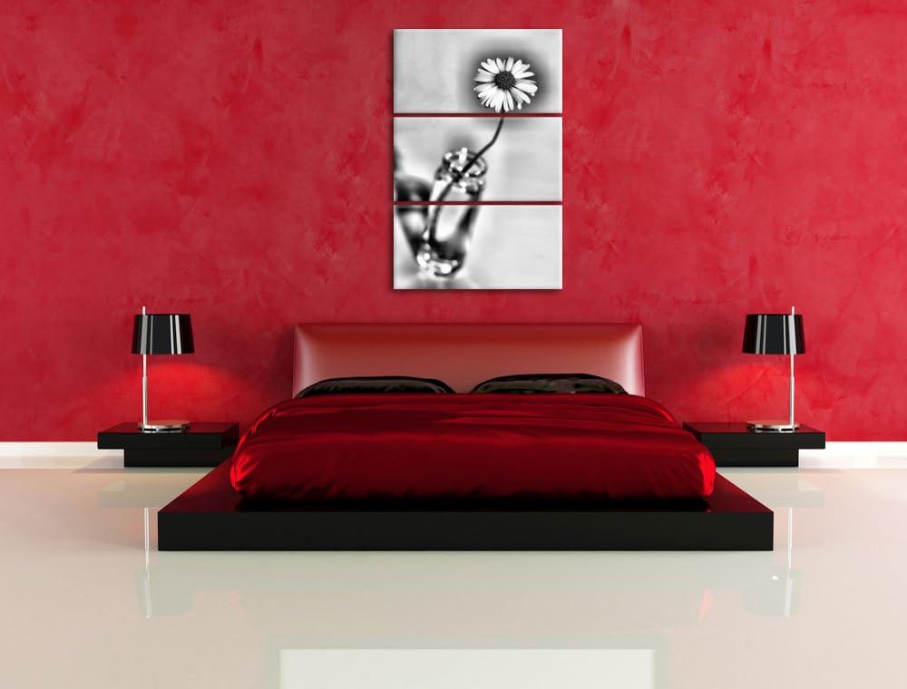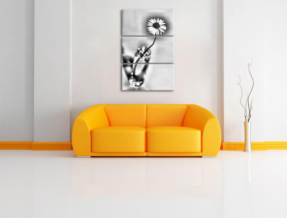 Pixxprint kleines Gänseblümchen im Glas als Leinwandbild/Grösse: 3 Teilig (120x80) cm/Wandbild/Kunst