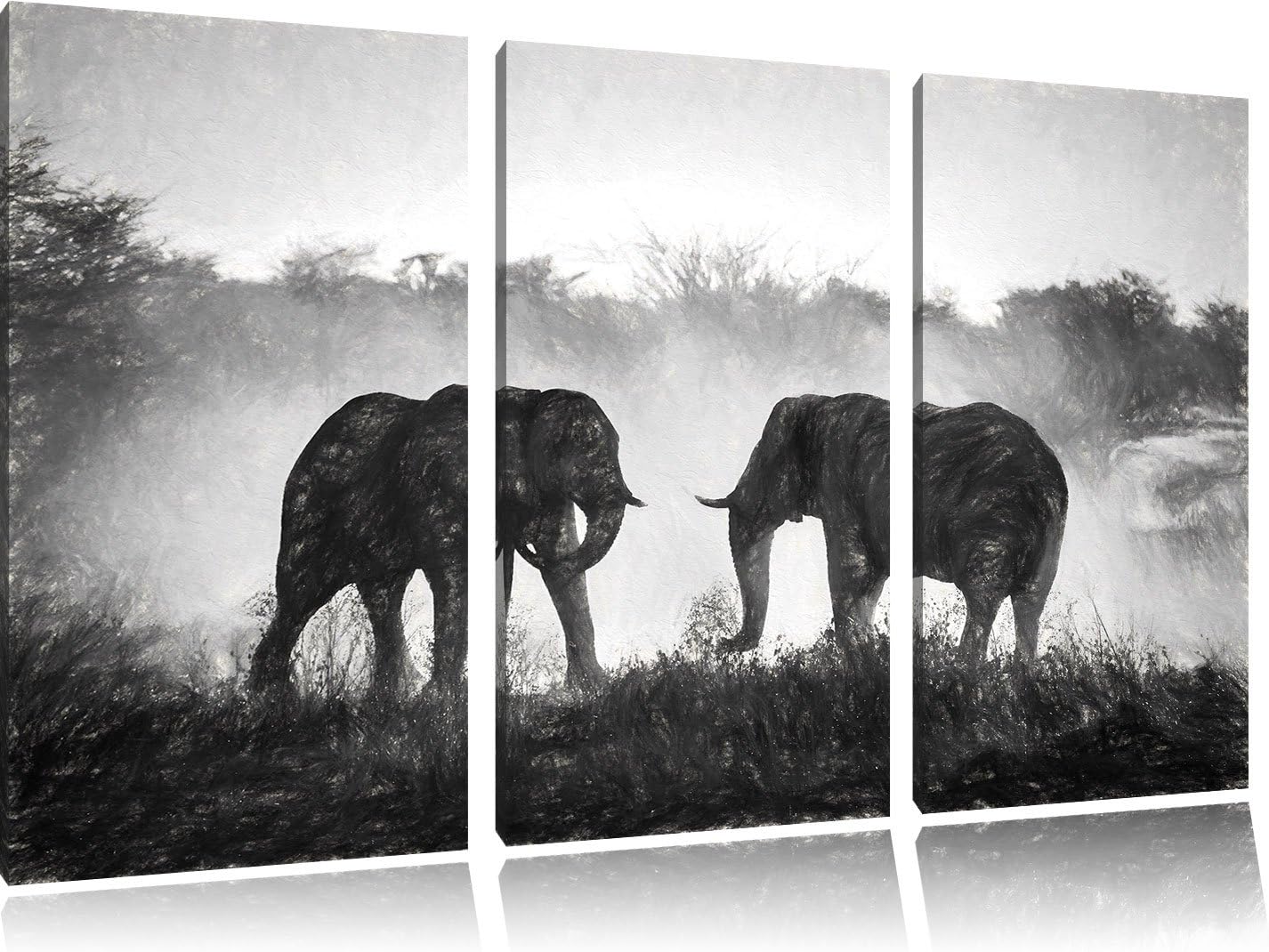 Pixxprint kämpfende Elefanten Kunst / 3-Teilig/Gesamtmass 120cm Leinwandbild bespannt auf Holzrahmen
