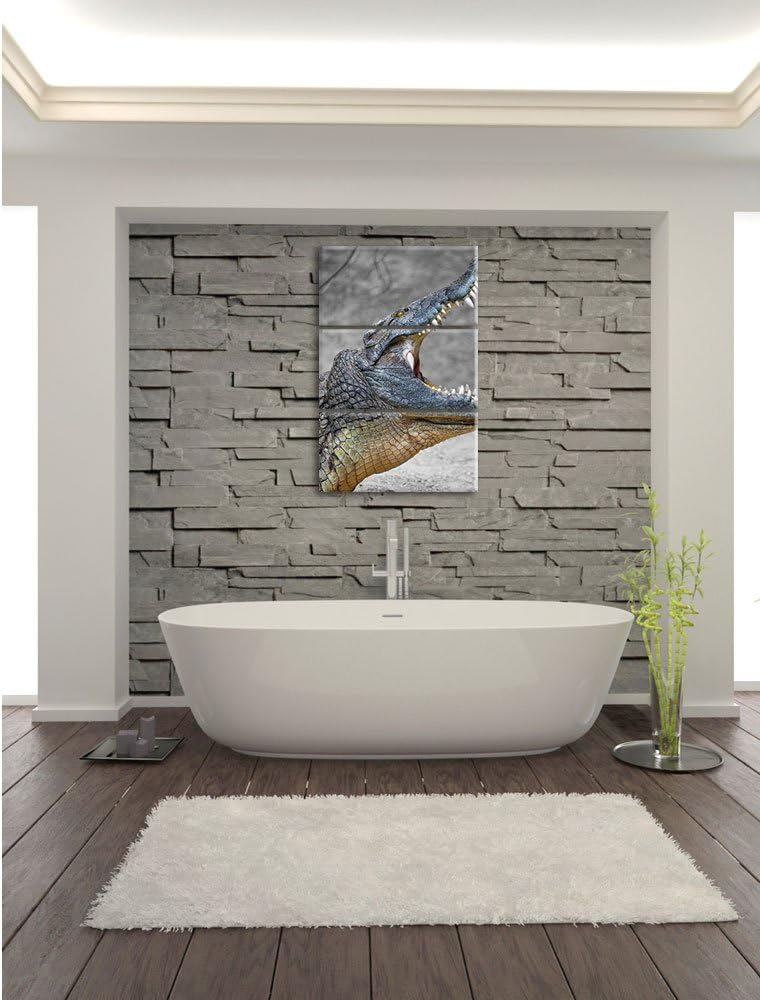Pixxprint Krokodil mit aufgerissenen Maul als Leinwandbild/Grösse: 3 Teilig (120x80) cm/Wandbild/Kun