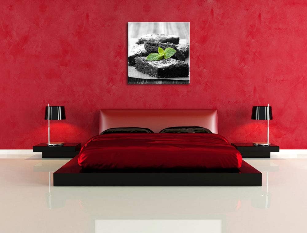 Pixxprint köstlicher Brownie mit Minze als Leinwandbild Quadratisch| Grösse: 70x70 | Wandbild| Kunst