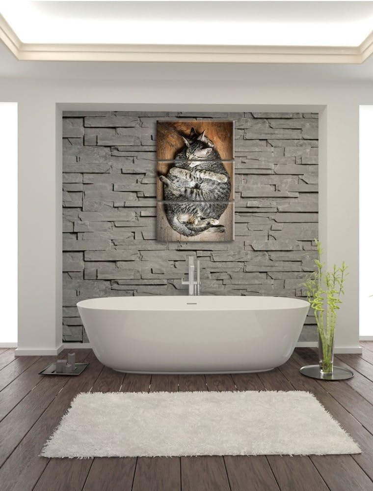 Pixxprint Kuschelnde Katzen 3-Teiler Leinwandbild 120x80 Bild auf Leinwand