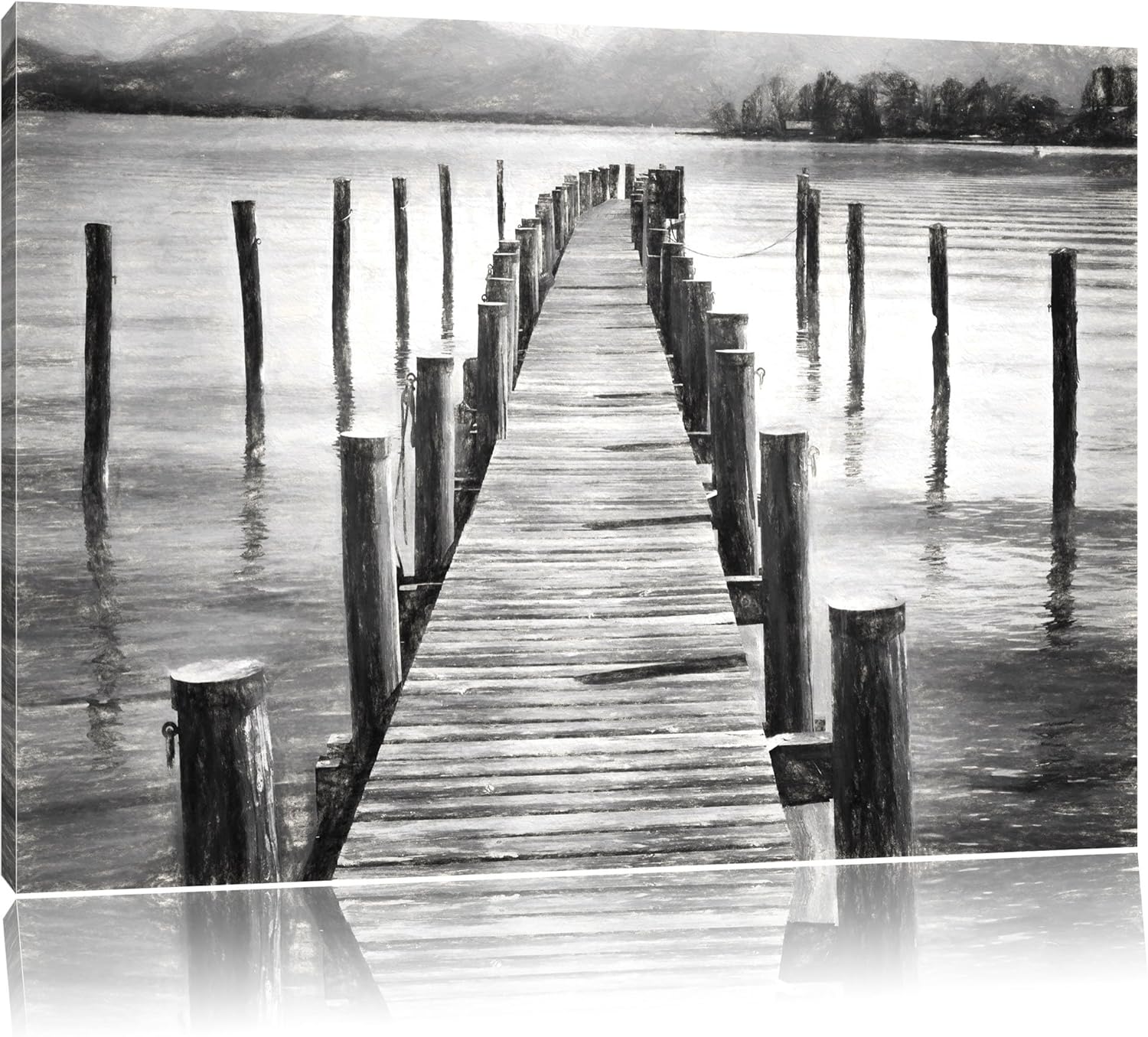 Pixxprint Langer Holzsteg ins Meer als Leinwandbild/Grösse: 100x70 cm/Wandbild/Kunstdruck/fertig bes